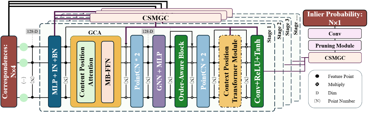 林舒源老师课题组论文“MGCA-Net: Multi-Graph Contextual Attention Network for Two-View Correspondence Learning”发现视觉数据的精确匹配是图像篡改、异常行为检测等任务的基础,而传统方法因局部几何建模不足和跨阶段信息优化缺陷,易受对抗样本干扰产生误匹配。该论文针对双视图匹配任务的几何约束建模难题,提出了一种面向复杂场景感知的多图上下文注意力鲁棒学习方法(MGCA-Net)。MGCA-Net设计了上下文几何注意力模块和跨阶段多图共识模块,通过动态融合空间位置与特征信息,并结合多图一致性约束自适应抑制外点噪声,显著提升了模型对局部异常数据的鲁棒性。实验结果表明,该方法在YFCC100M和SUN3D数据集上超越现有最优方法,尤其在存在噪声、遮挡或对抗干扰的场景中表现突出,为视觉数据分析及智能监控等提供了新思路。该论文的主要合作者为365英国上市硕士研究生盧明天。